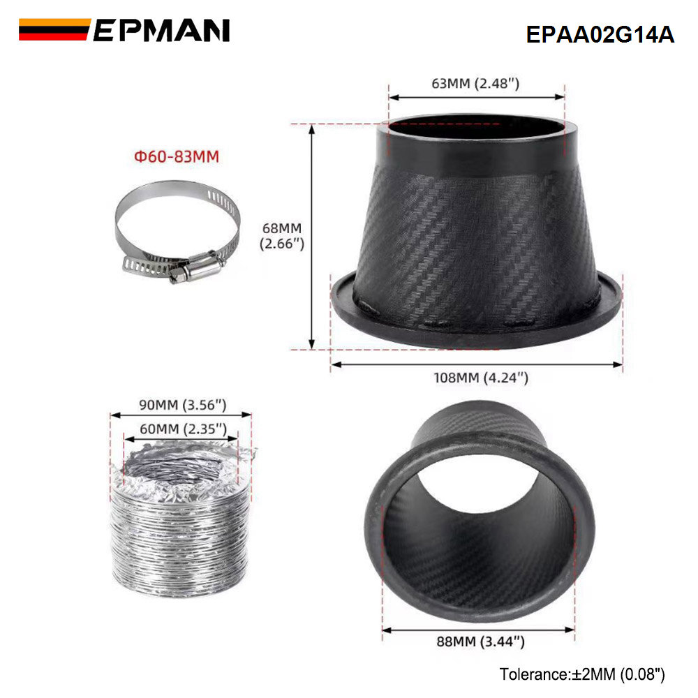Shape:Round  Part No.:EPAA02G14A  Air Funnel 10.8cmx6.8cm/4.25inchx2.68inch, Air Intake Pipe 9cm/3.54inch, Hose Clamp 6cm-8.3cm/2.36inch-3.27inch