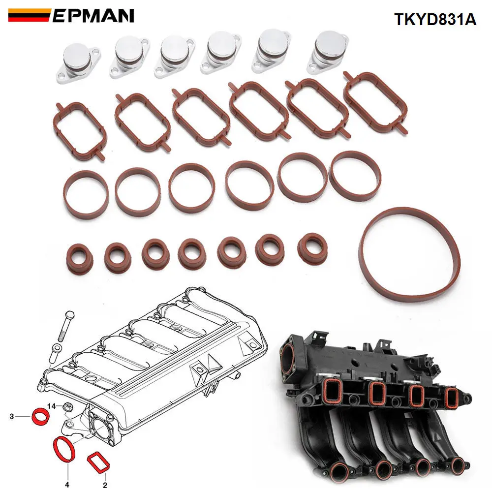 EPMAN 6 x 22mm Aluminium Swirl Flap Removal Repair Kit W Gaskets For BMW E46 E39 E90 E39 / E60 / E61 Intake Manifold TKYD831A